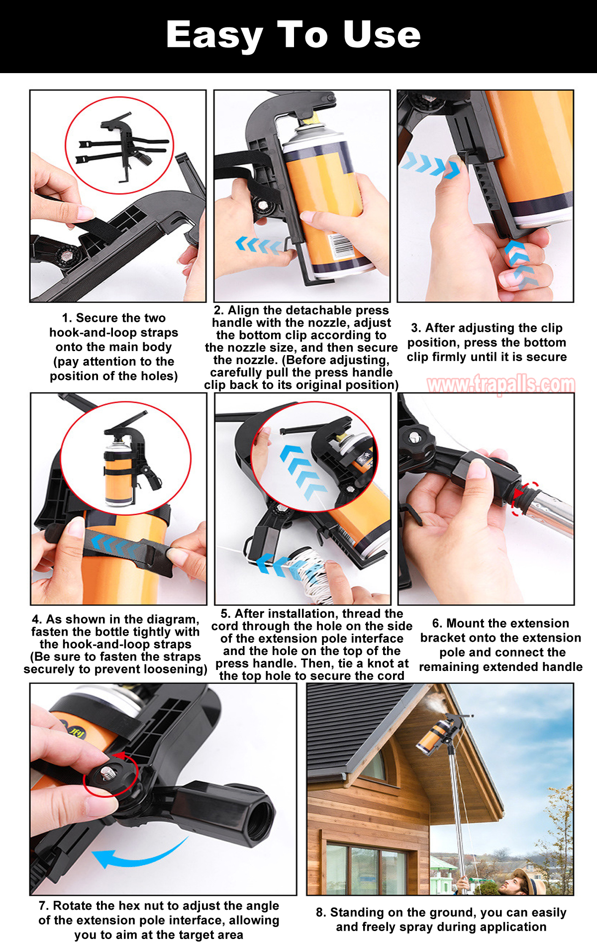 Outdoor Window Cleaner Spray Paint Extension Pole Adaptor Adjustable Bracket Adaptor for Wasp Hornet Bee