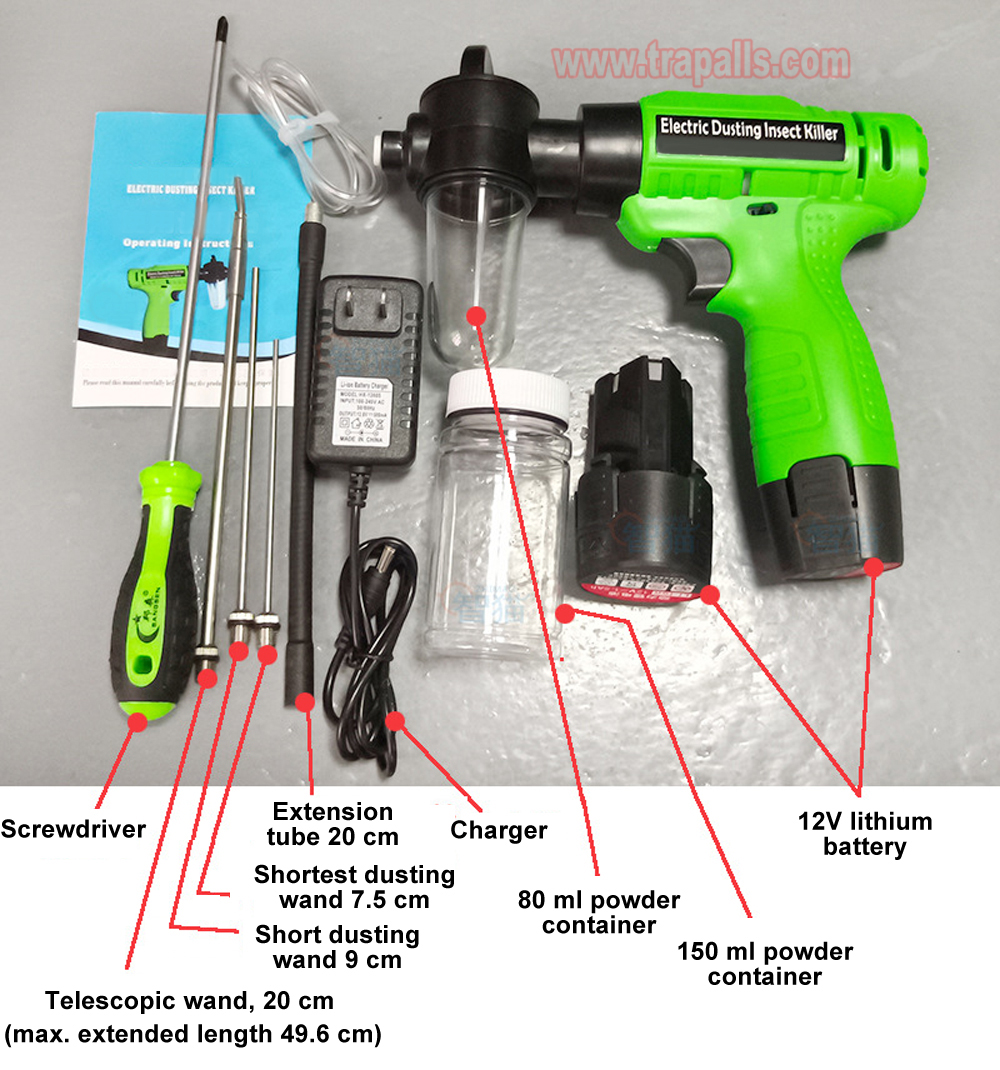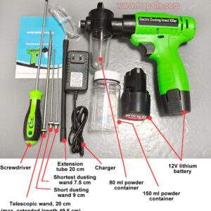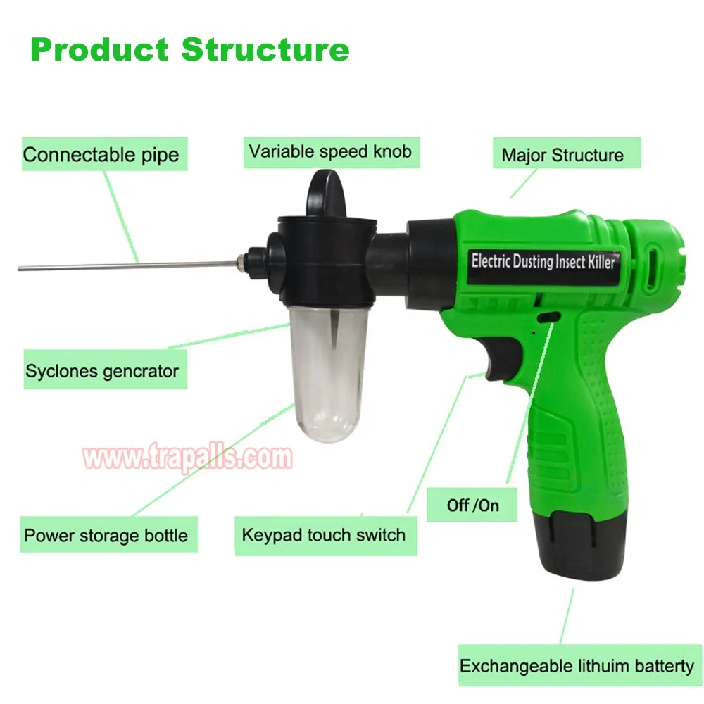 1.Electric duster device designed specifically for pest control of termites, ants, and various other pets