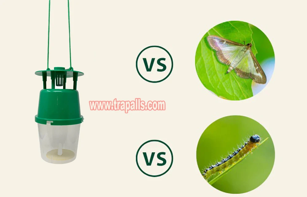 3. It catches and kills adult male Box Tree Moths by utilising a pheromone lure. Adult male moths will be attracted to the scent and fly inside the trap through the holes on the side, drop down, and become trapped