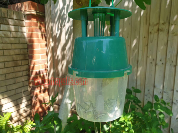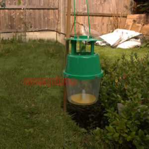 3. It catches and kills adult male Box Tree Moths by utilising a pheromone lure. Adult male moths will be attracted to the scent and fly inside the trap through the holes on the side, drop down, and become trapped