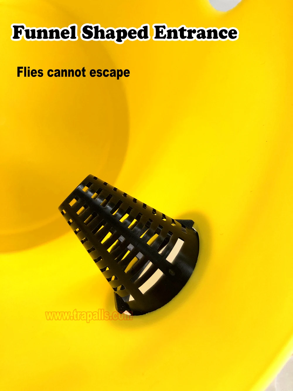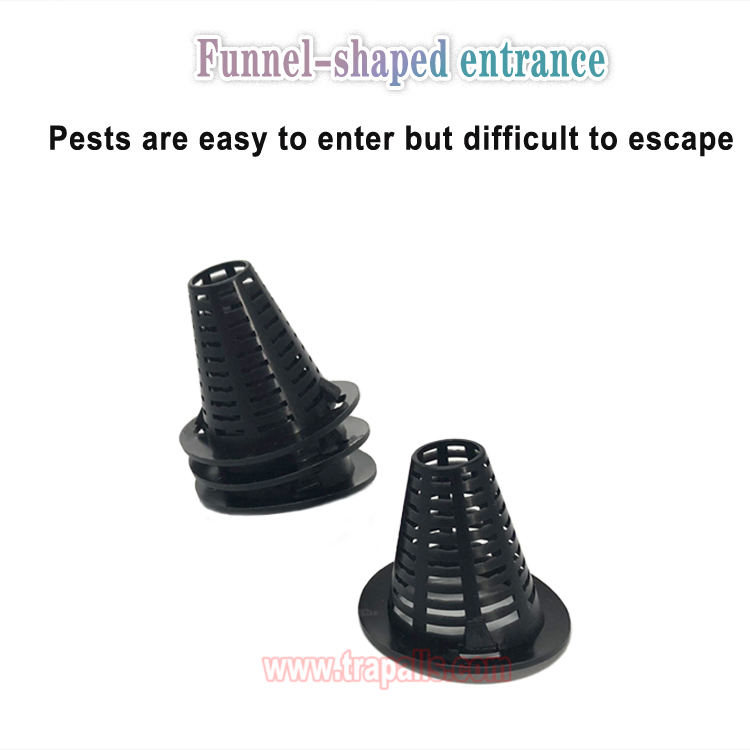 3. Escape- Proof design. A one-way funnel structure. The large entrance guides flies in, while the small exit prevents them from getting out. Combined with smooth inner walls and a tapered slope, the design achieves an escape prevention rate of 99%+