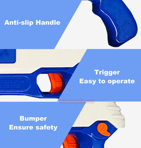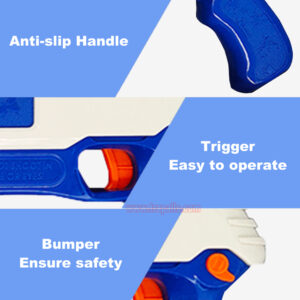 5. Working principle. When the trigger is pulled, the spring mechanism generates force to propel the salt granules from the chamber. The salt is ejected with sufficient speed and force to strike targets like flies or mosquitoes. The impact of the salt granules achieves the goal of repelling or eliminating them