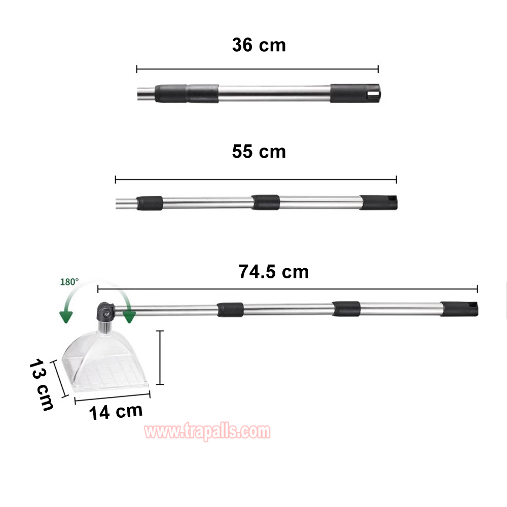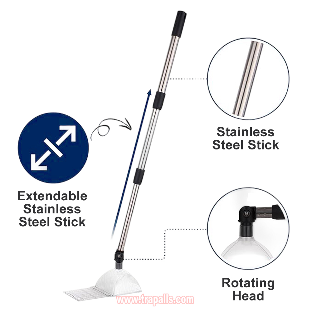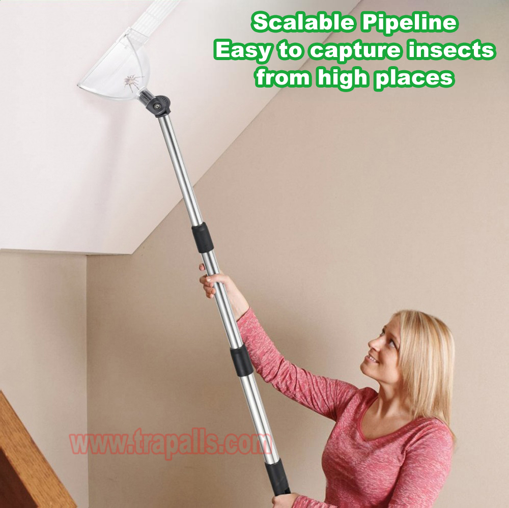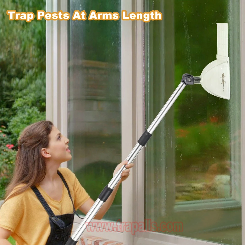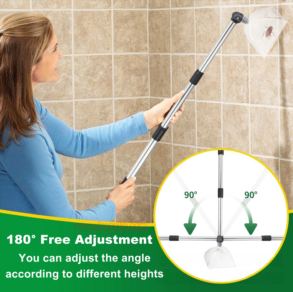 4. Extended reach rand rotating head. Long and extendable stainless steel stick to reach high ceilings and tight corners without getting too close to the pests. 180° rotating head improves control in tight spots