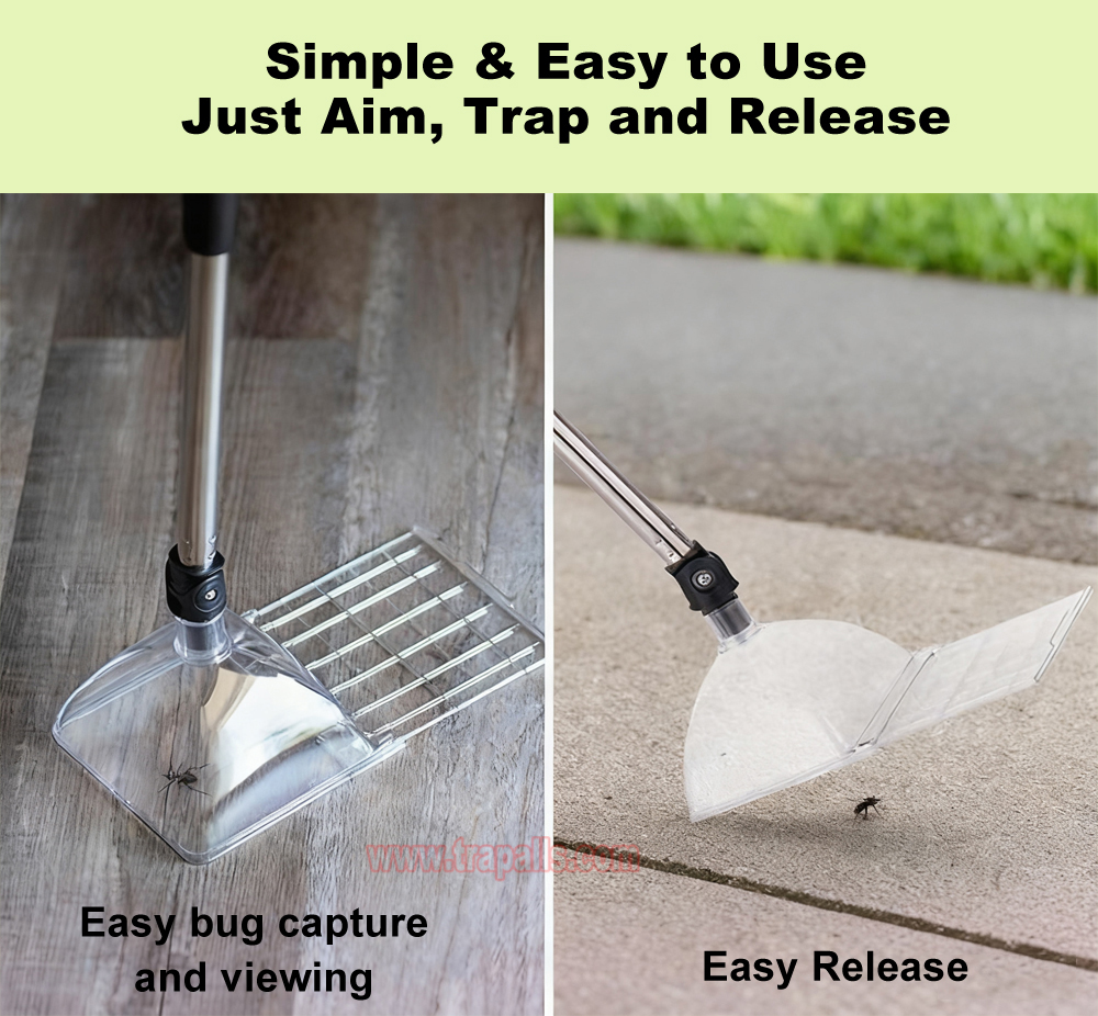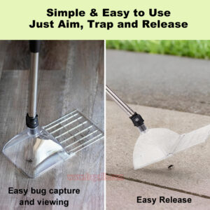 3. Physical capture. Wider scoop to catch bugs of almost any size. Humane way to remove pests from the home and release captured bugs back into the wild unharmed