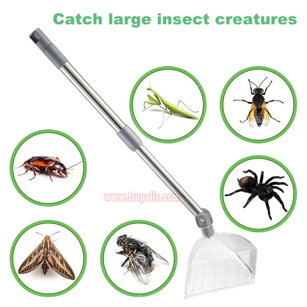 3. Physical capture. Wider scoop to catch bugs of almost any size. Humane way to remove pests from the home and release captured bugs back into the wild unharmed