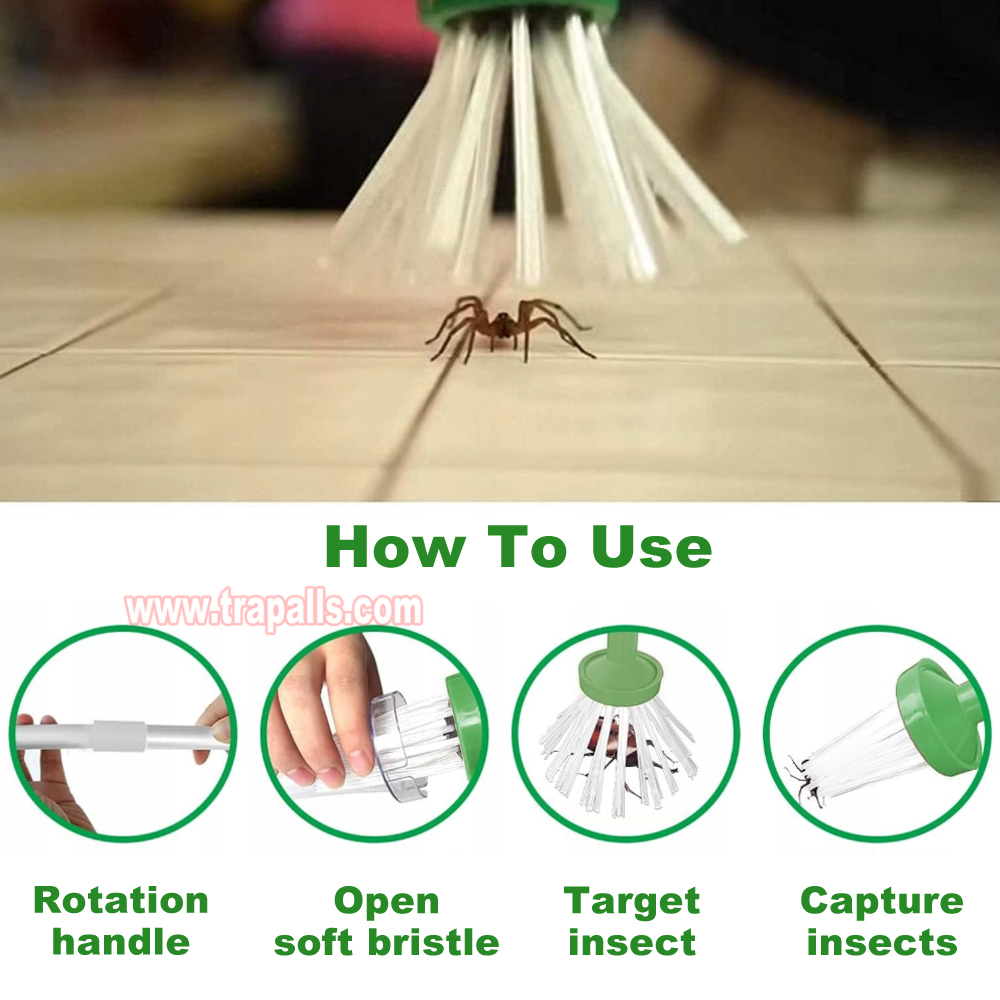 1. Humane, safe and harmless. Designed with soft bristles to capture spiders and insects humanely without causing harm, enabling safe catch-and-release. Users can handle insectswithout direct contact, eliminating therisk of bites