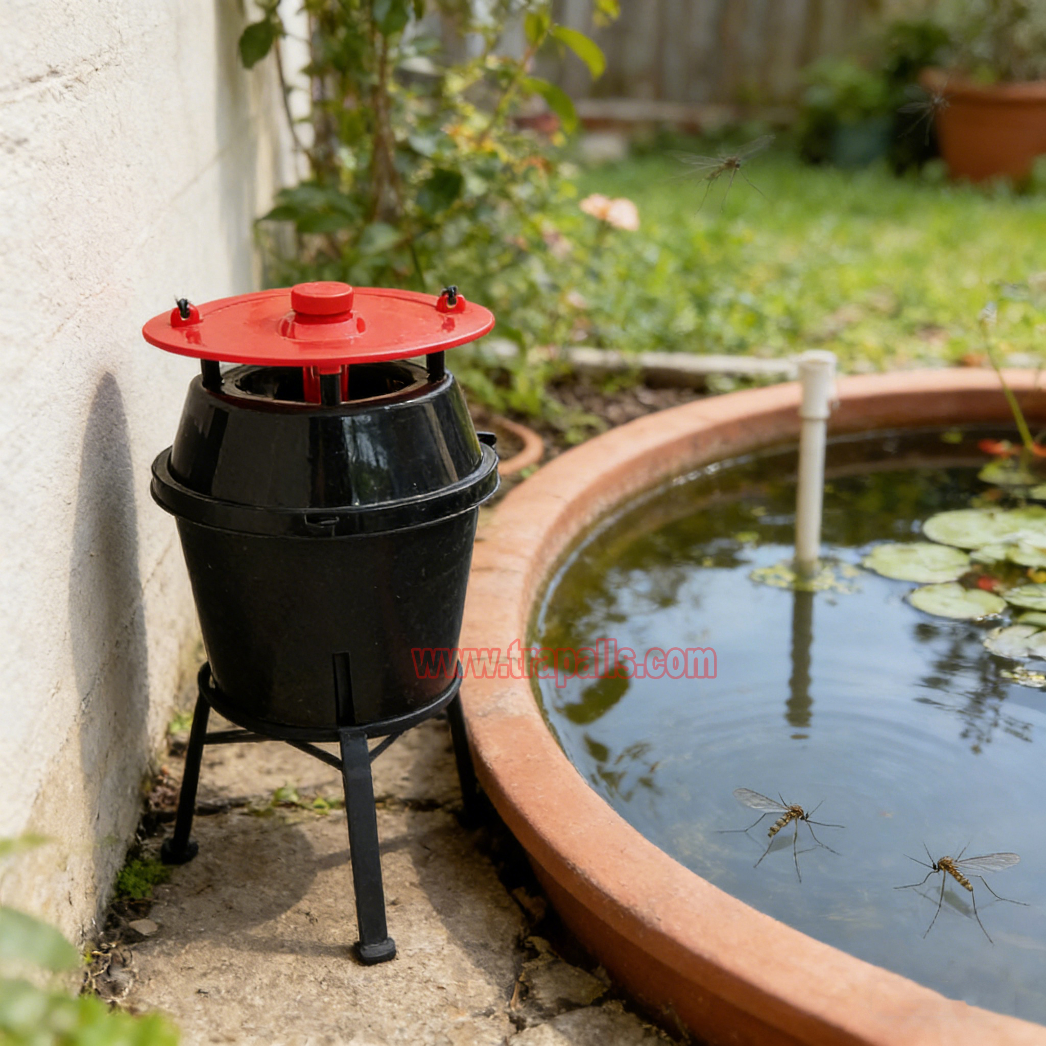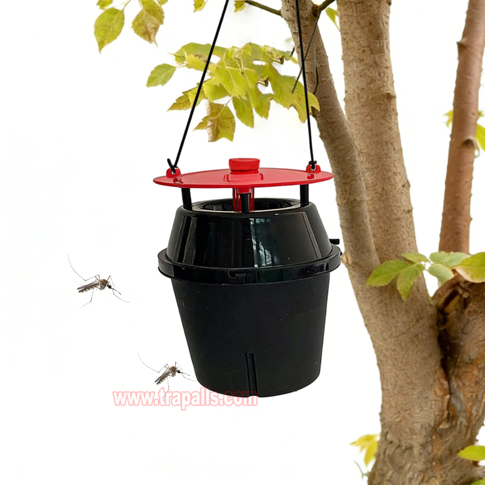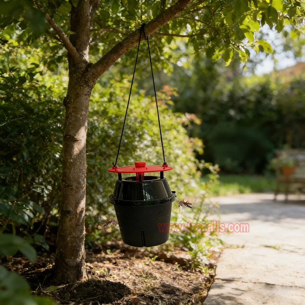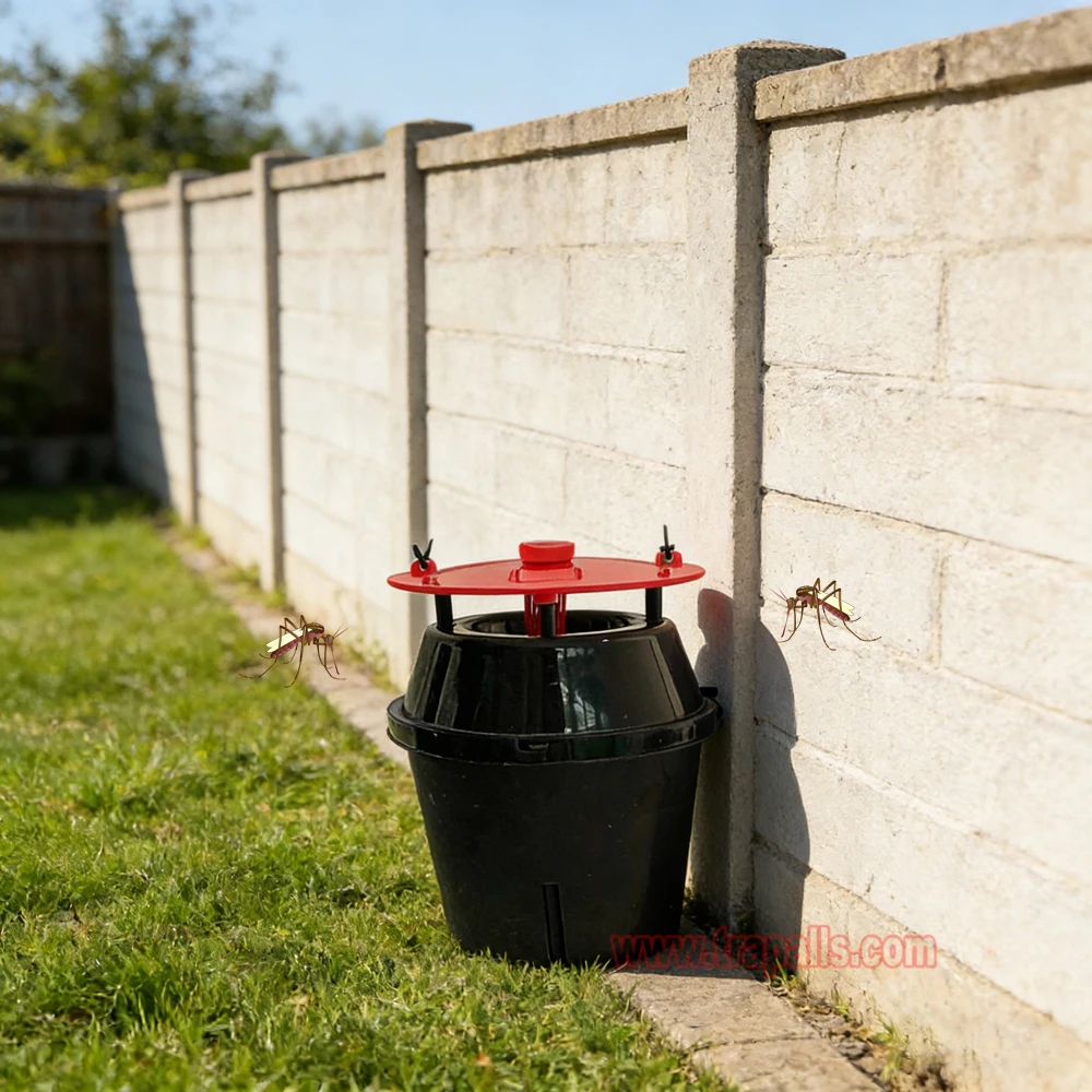4. Hanging and Placement. Hang or position the trap at a height of 0.8–1.2 meters (close to typical mosquito flight height). If placed on the ground, elevate it by 20 cm (to prevent soaking from ground water accumulation). Keep the trap 3–5 meters away from human activity areas (e.g., patios, seating areas) and avoid outdoor light sources (as light can interfere with mosquitoes’ odor detection)
