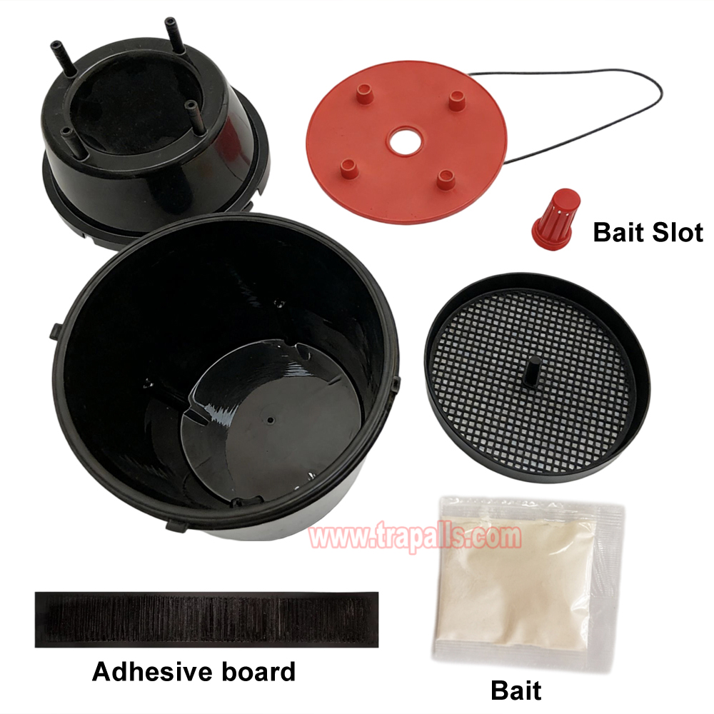 3. Easy to Use. Fill the bucket with fresh grass, the attractant, and water, keeping the water level 1–2 inches below the drainage holes (to avoid overflow and dilution of the fermenting mixture). Roll the glue board into a cylinder and press its edges firmly against the inner wall of the trap bucket to minimize escape gaps. Place the sieve tray flat at the bottom of the trap with the pull tab facing outward for easy removal later
