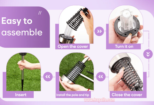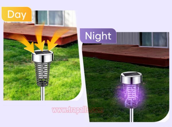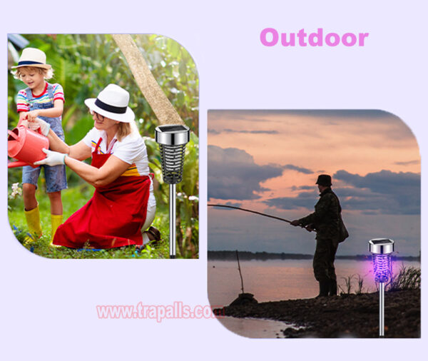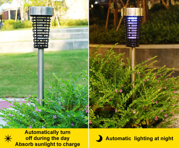 7. Note: before using for the first time, tear off the film on the solar panel, turn on the switch, and place the solar mosquito killer lamp in the sun. If it does not light up, turn on the switch and expose it to the sun for 2 days, or replace the battery to solve the problem and keep it out of the reach of children