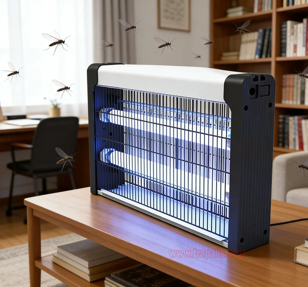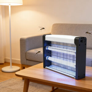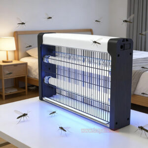 7. Working principle. Physical mosquito control. It uses blue light to trap mosquitoes and generates high-voltage power grids to kill mosquitoes in an instant. Protects and prevents against annoying and disease carrying insects and flies