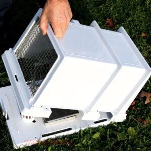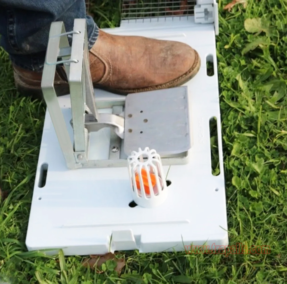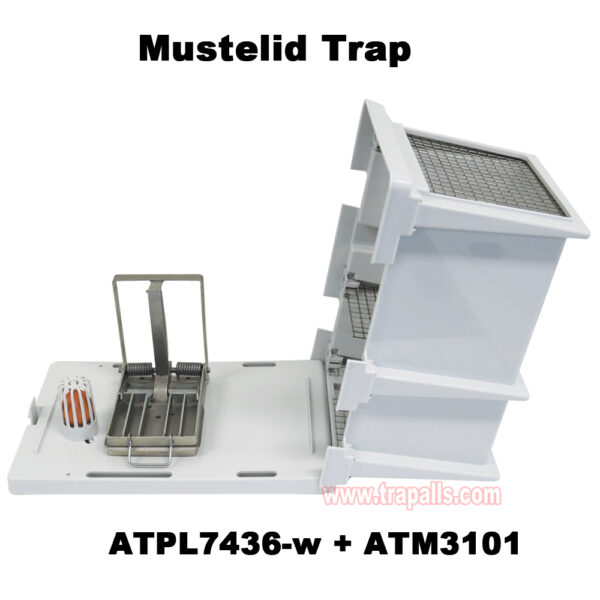 5.Compatibility. Holes on the base of the trap line up with the mounting holes on the base of the Mechanism (ATM3101). Easily screw the Mechanism (ATM3101) to the base of the trap. Working in tandem to catch target species