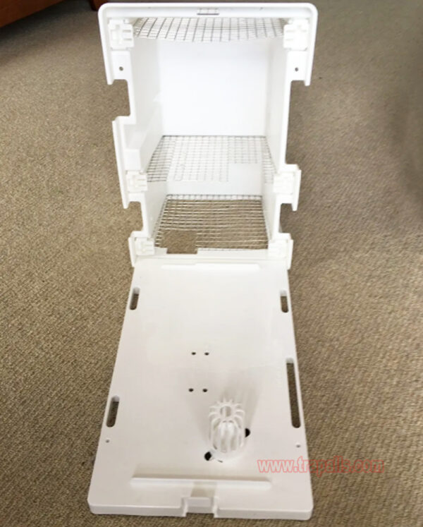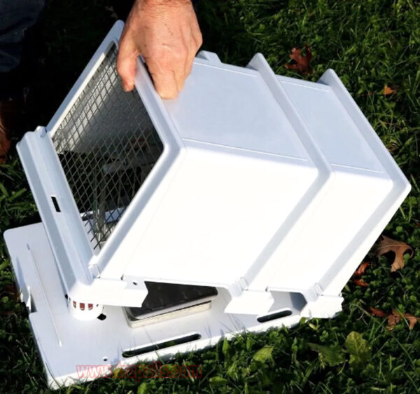 2.It is made of high-quality plastic, with thick, sturdy walls and a heavy duty plastic hinge. Shell latches closed into base to keep non-targeted pests away from bait and set trap