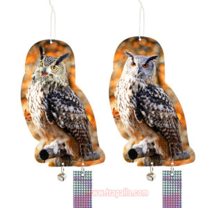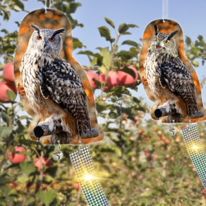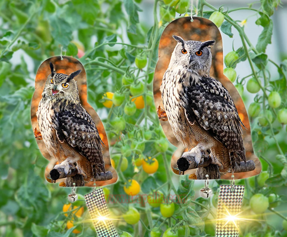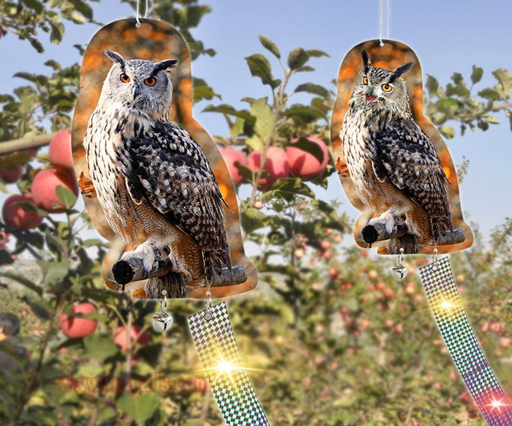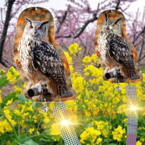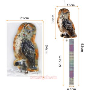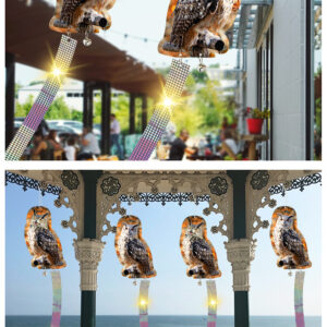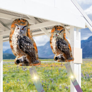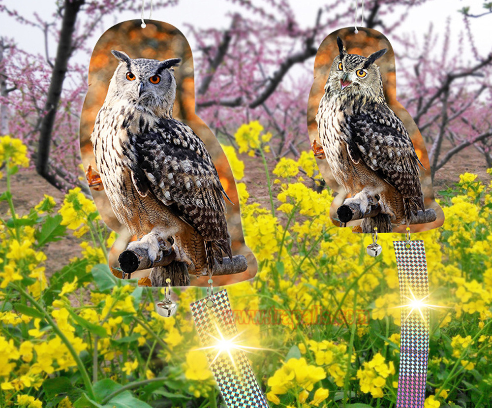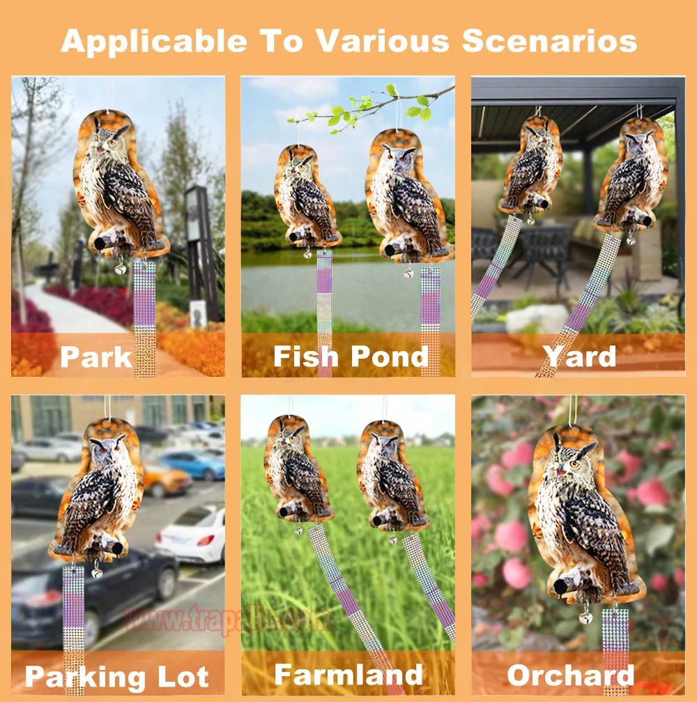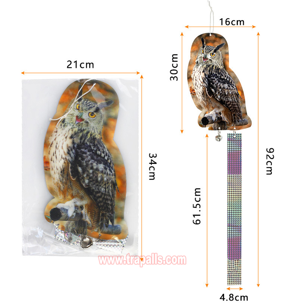 1. Working principle. Utilizing a physical repellent method, it mimics the appearance of natural predators like owls and hawks, combined with reflective strips and bells. It leverages strong light reflection, sound, and predator intimidation to drive away birds such as woodpeckers and pigeons, preventing them from roosting and nesting. The process involves no chemicals, ensuring humane deterrence without harming animals