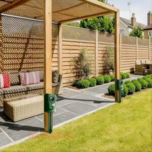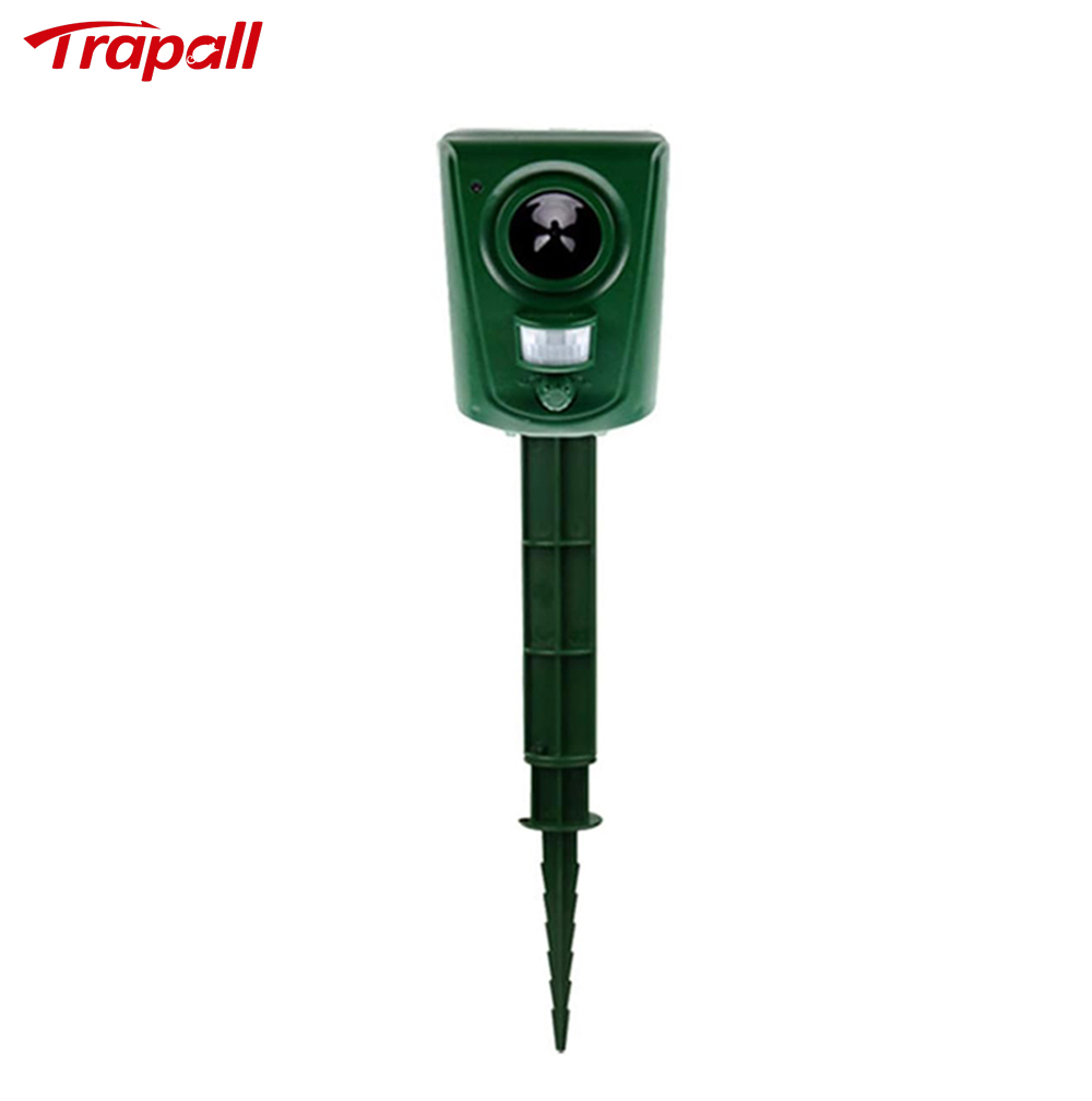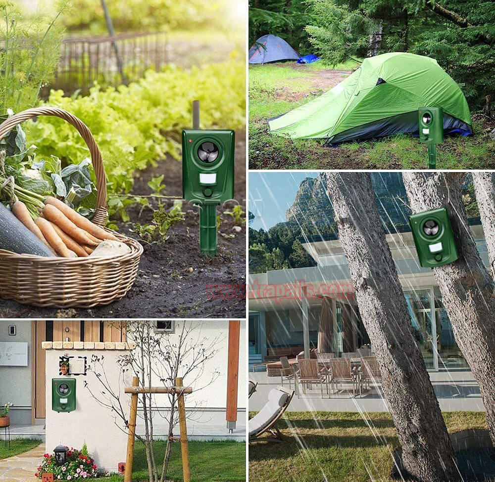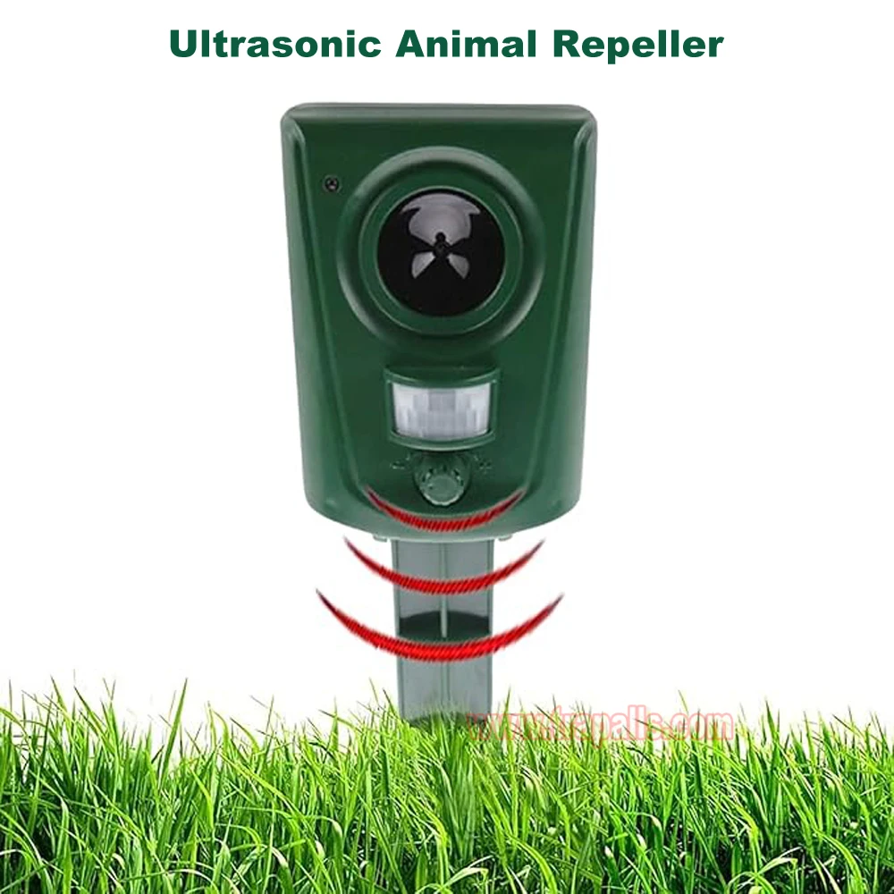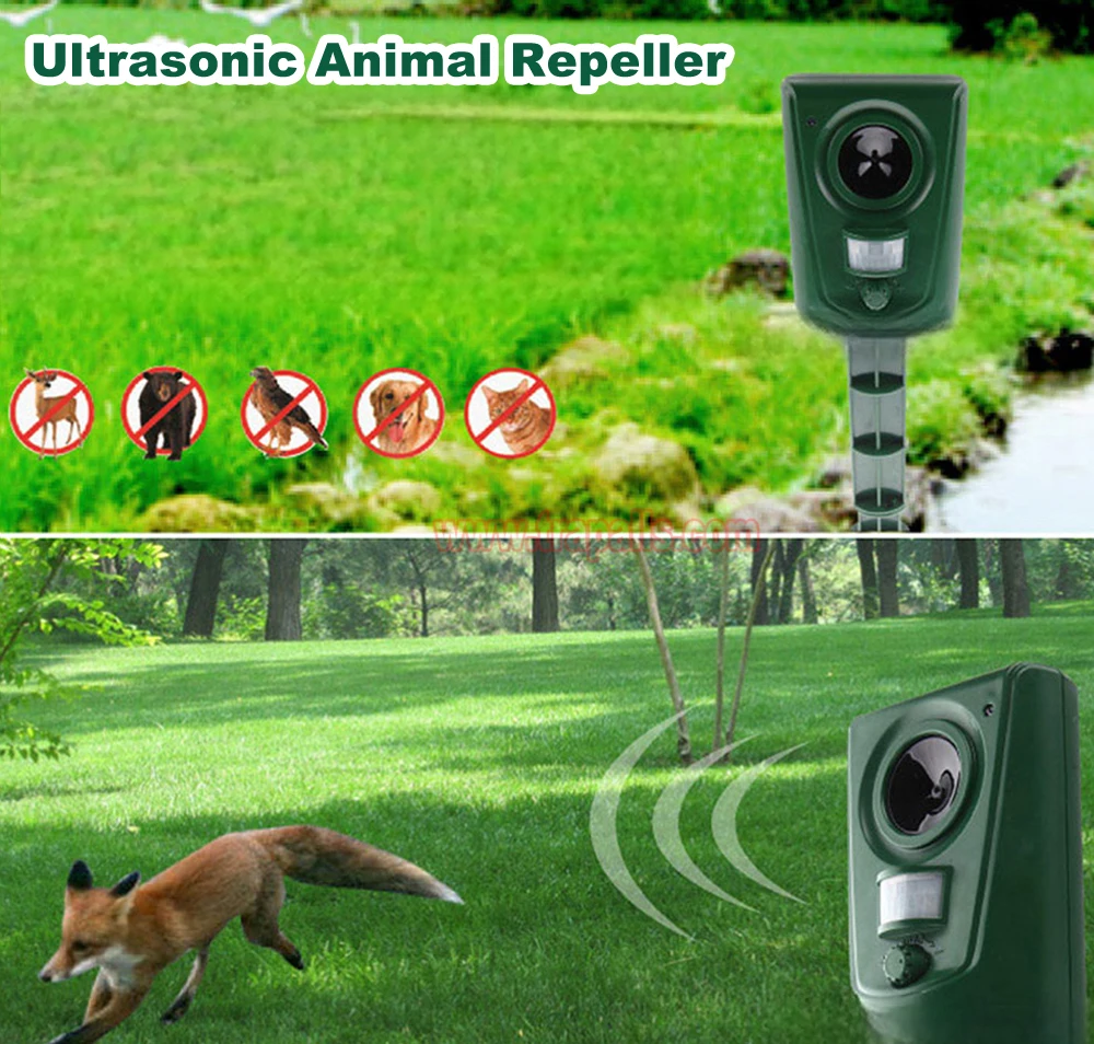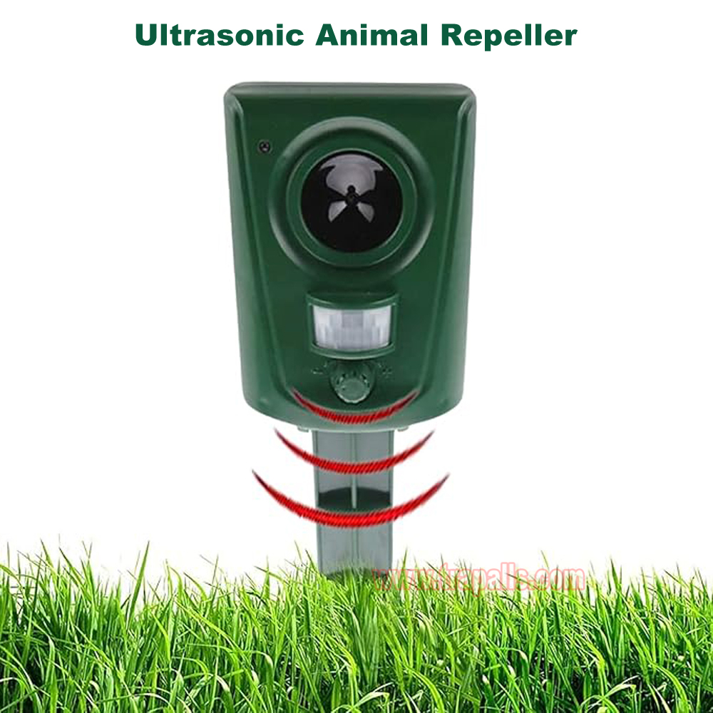 5.This animal repeller scares away unwanted animals and pests using a passive infrared sensor (PIR) that detects motion and triggers the ultrasonic speaker to emit a combination of ultrasonic sounds, sonic sounds, and powerful flashing LED strobe lights